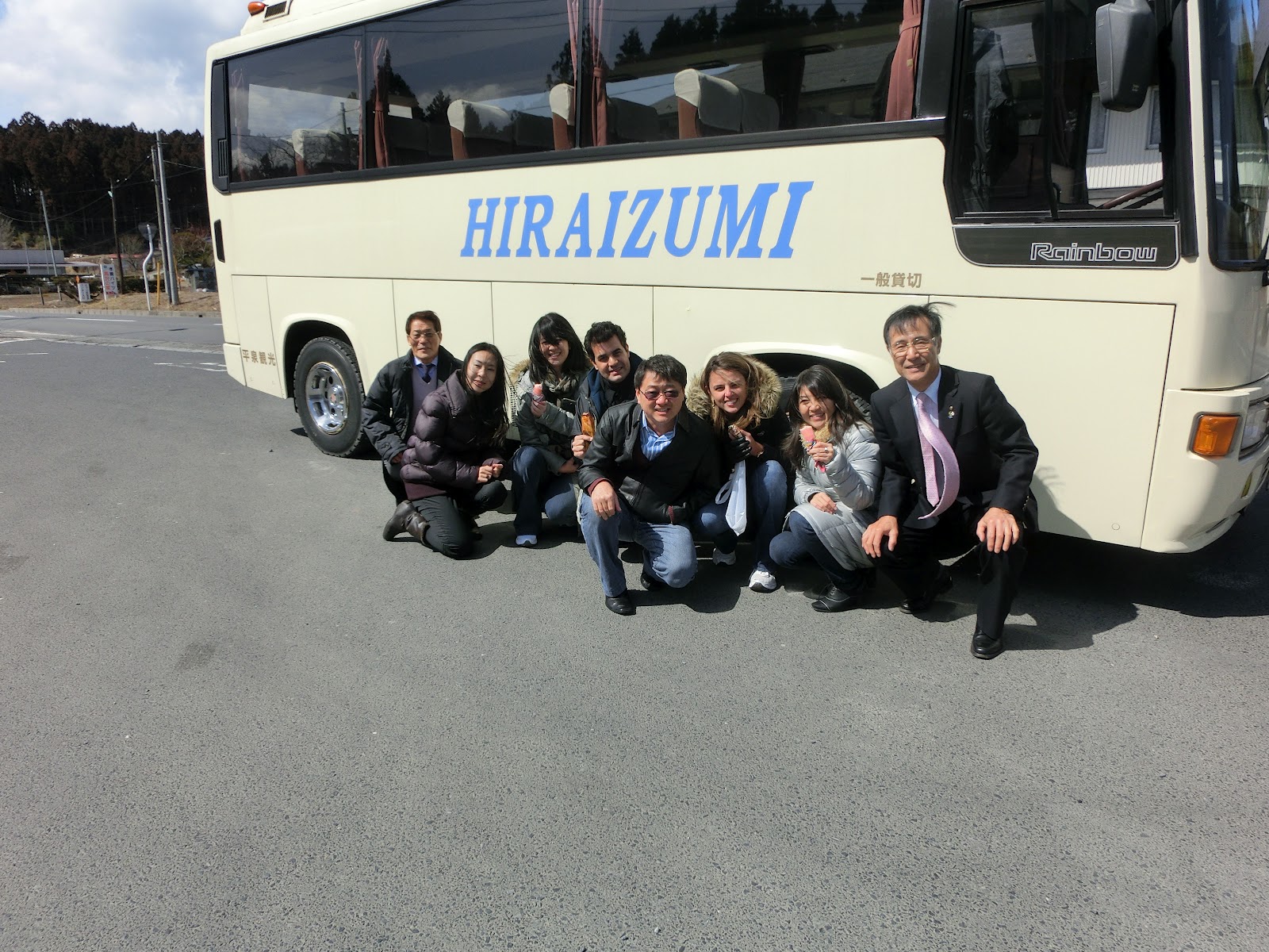 SEGUNDA-FEIRA, 19/03/2012 - Acordamos de madrugada, as 5h15m, para nos prepararmos para uma longa viagem, de 400 km, ate Ofunato, cidade que fica na regiao que ha um ano foi extremamente castigada pelo Tsunami, para ser mais preciso no dia 11 de marco, quando chegamos ao Japao, a tragedia completou um ano. Sabiamos, de antemao, que se tratava de uma visita seria, pois este evento mudou a relacao dos japoneses com as tragedias naturais que castigam a bela ilha asiatica.